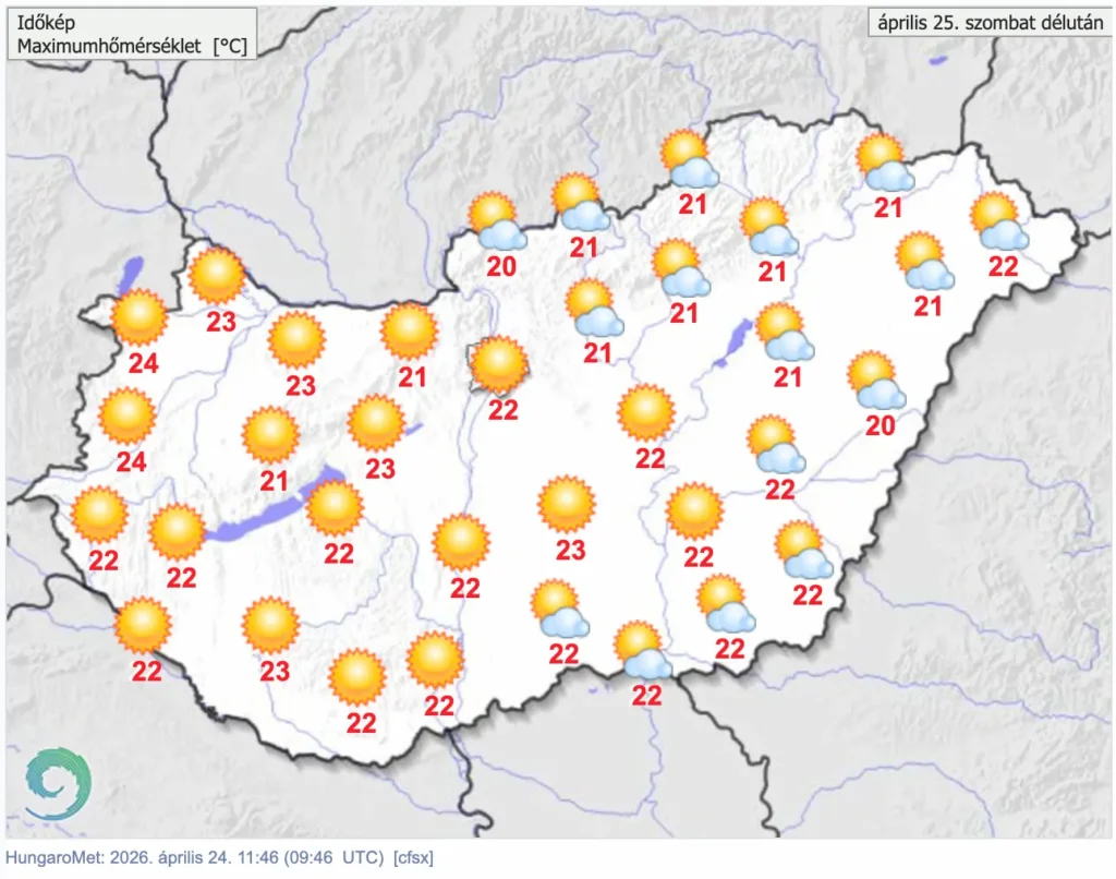 Szombaton 21 fokos melegben sütkérezhetünk a napon, vasárnap viszont már csak 15-17 fok lesz az országban.