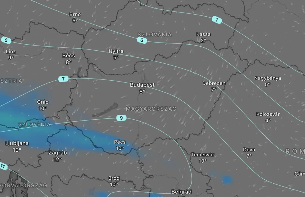 Szerdán ideér a már régen rebesgetett hidegfront. Ennek hatására néhány fokkal visszaesik a hőmérséklet és lesz olyan tájegység Magyarországon, ahol eső is előfordul.