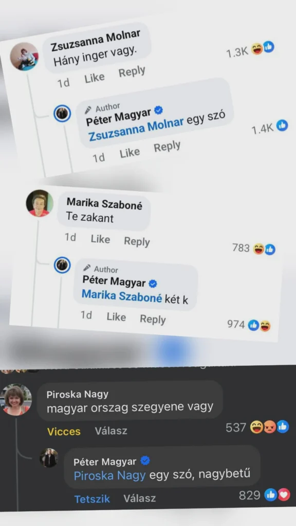 A kritikus kommenteket Magyar néha egészen egyszerű módszerrel igyekezett semlegesíteni. A fenti személyeskedő hozzászólásokat a helyesírási hibára fókuszálva tette nevetségessé.